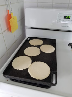 We like to eat Mexican food and I have a gluten intolerance and so corn tortilla are a good option. I was buying a bag of crispy tostitos every two weeks or so, but that plastic bag is of the un-recyclable kind, solution… I learned to make tacos. There are lots of online tutorials and so I won’t worry too much about describing the details. The maseca can be bought at most health/specialty stores. There is a bit of a learning curve but I can make 15 tacos now in about 5 minutes, which isn’t much more time than going down the aisle for them at the grocery store. You do have to get the tortilla press, these are easily available at a kitchen specialty store and looks like it will last for ever. I would get a larger size next time, buy the biggest one you can. You do have to use a plastic liner, I use cut up cereal bags and I’m able to wash them off and use them many times. The maseca bag is paper and will make 10 or so batches of tacos. I did buy a two burner grill which makes it much faster.